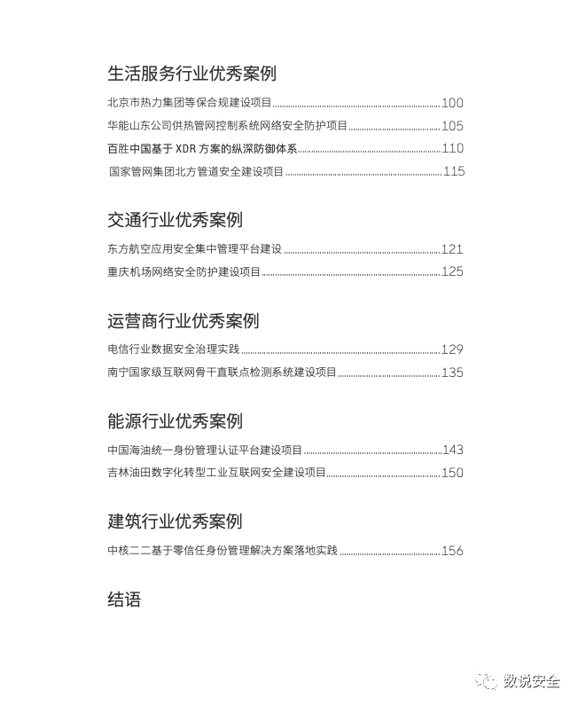 在这些参评案例中确实见到了不少令人印象深刻的优秀的解决方案,专家组最后评出30多个对行业比较有借鉴意义的优秀案例,今天由ISC和数说安全联合发布,希望能让我们通过优秀案例的学习,分享同行的最佳实践经验,提升咱们网络安全产品和解决方案的水平,提升各行业的网络安全防御水平,为我们国家的数字化转型保驾护航!