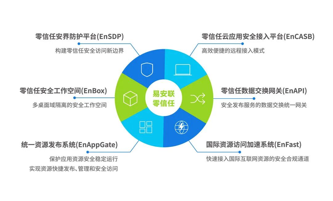 目前,易安联已构建了基于零信任安全的完整产品体系,先后发布了数款零信任产品。2017年推出EnCASB(零信任访问平台),从教育科研、电力领域开始商业实践;2019年推出EnSDP(零信任防护平台)并实现商用,构建了端到端的组织应用安全访问新模式。2021年易安联又重磅推出EnBOX(零信任安全工作空间),助力研发型企业及在数据采集、存储、安全与隐私保护等领域有特殊需求的用户,打造集终端管理、数据防控、数据交互安全于一体的安全办公新模式。截止目前,易安联零信任系列产品已在教育、核电、电信运营商、智能制造等领域取得了优异成绩。