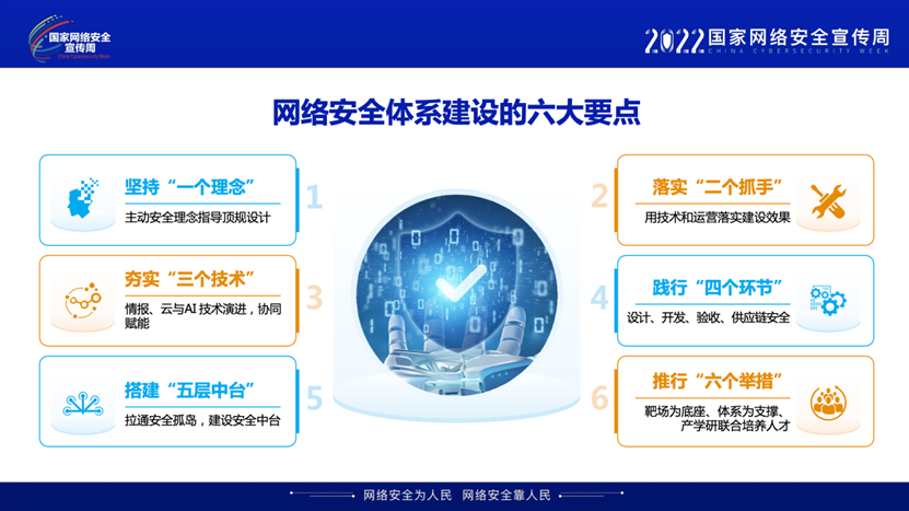 在刚刚结束的2022国家网络安全宣传周期间,紫光股份旗下新华三集团圆满承办安全周重点活动——长三角网络安全协同发展论坛。其间,新华三集团副总裁、新华三信息安全技术有限公司总裁孙松儿在大会中发表主旨演讲,他明确指出在当前我国政策环境持续向好的同时,也不能忽视产业发展过程中呈现出的多重矛盾与挑战,唯有把握网络安全体系建设的六大要点,才能实现化解产业矛盾、夯实产业基础、建设网络强国的目标。