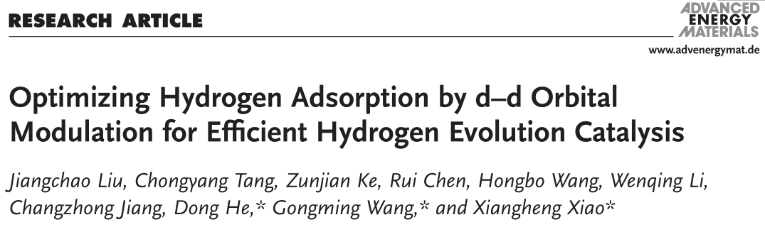 题目:通过d–d轨道调制优化氢气吸附以实现高效析氢催化