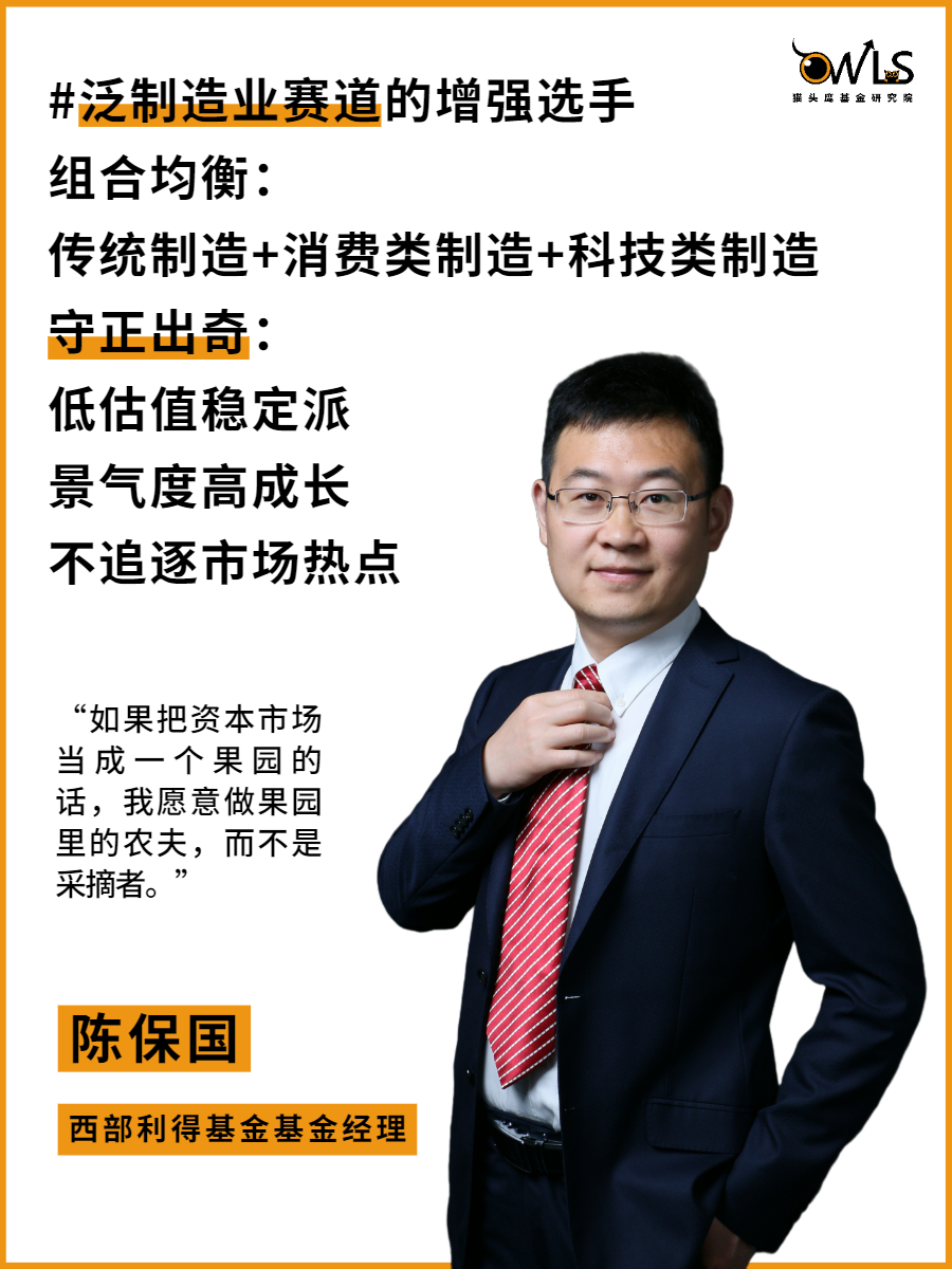 陈保国先生,2016年1月加入西部利得基金,从研究员做起,一直到现在的研究部总经理、基金经理。2020年2月开始管理基金,目前担任西部利得景瑞混合,西部利得成长精选混合和西部利得景程混合的基金经理。虽然管理时间还不到两年,但他有着丰富的证券研究经验。在与之交流的过程中,猫头鹰发现他确实是一位风格独特且稀缺的基金经理。![]()