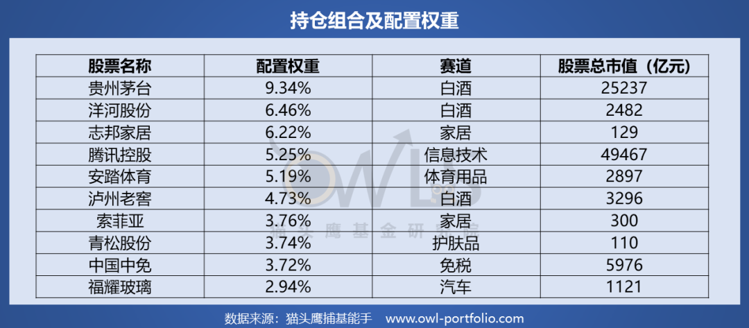 她更愿意在多个赛道上寻找投资线索,组合多元均衡。比如汽车、免税、护肤、家居、家电等等。历史上,除了食品饮料和家电,其他行业的平均配置权重均不超过5%。(数据来源:猫头鹰捕基能手)