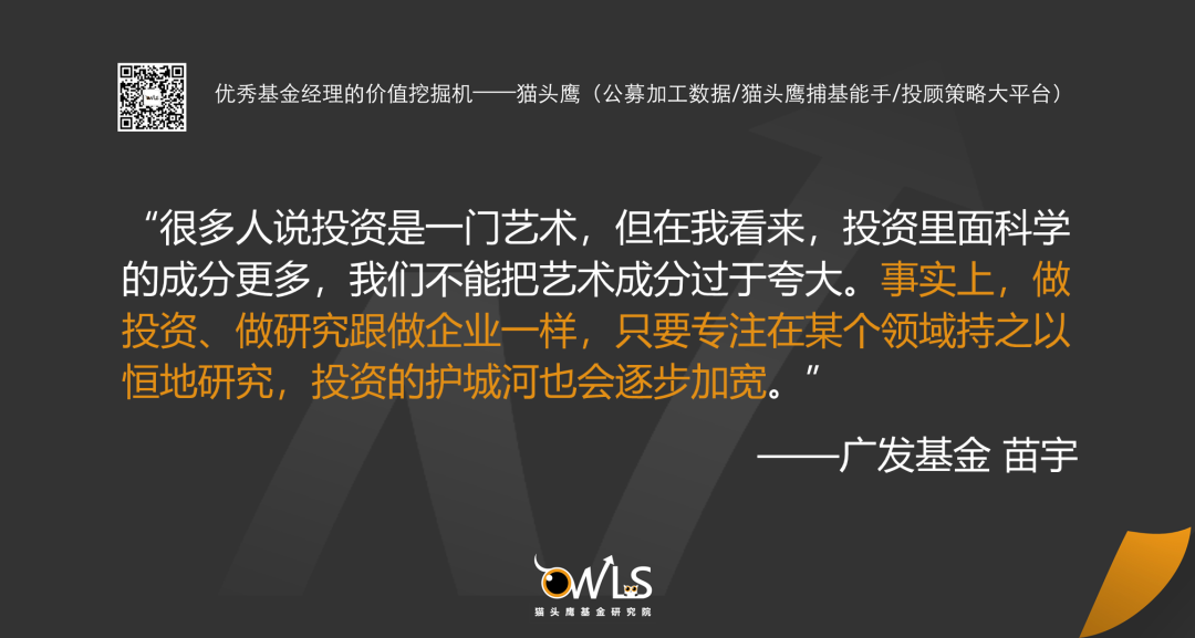 持续的进化也意味着,基金经理需要有开放式的心态去学习,不断更新知识结构,主动拓展行业能力圈。苗宇说过的一句话,令我们印象深刻: