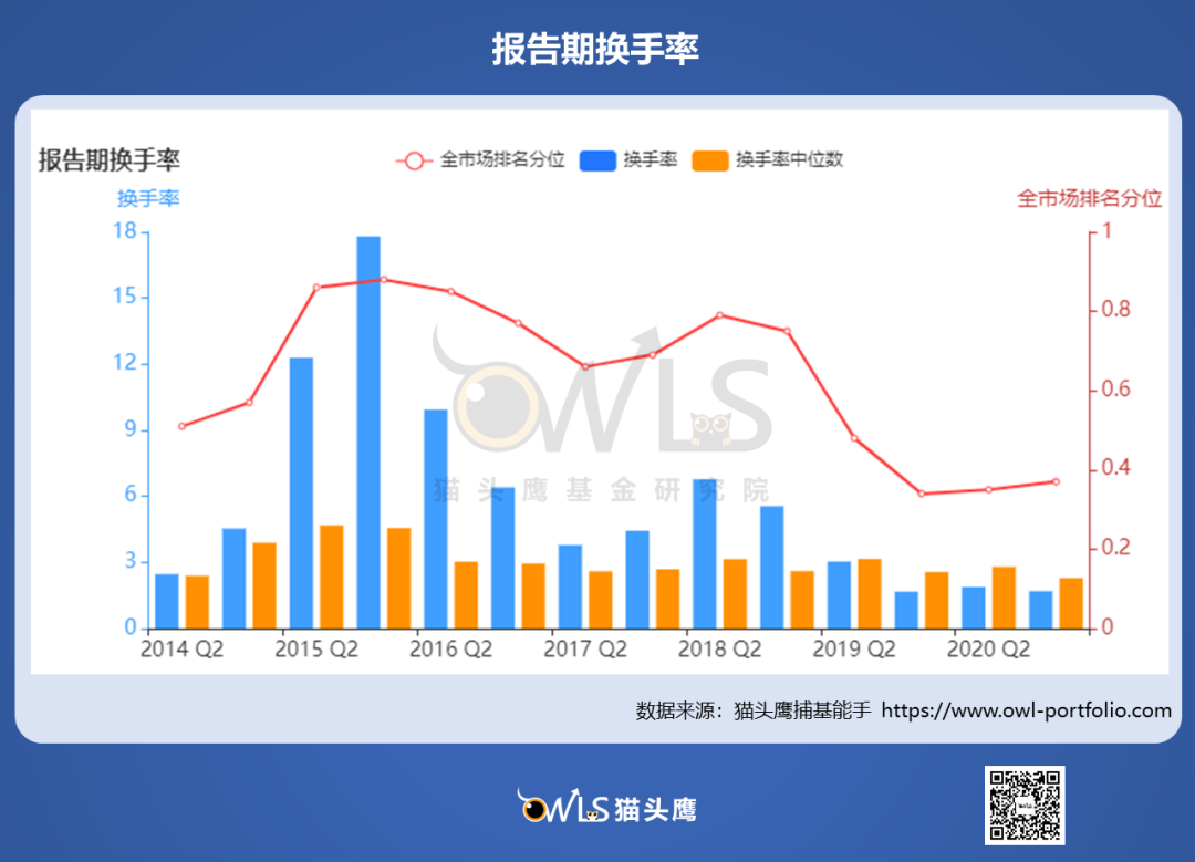 以广发竞争优选最新一期(2021年Q2)的持仓为例,除了新进入持仓的宁德时代,其余重仓股的持有时间均在4个季度或以上, 前十大重仓股的平均持有时间是7、8个季度。其中,贵州茅台持有19个季度,五粮液和泸州老窖也已经持有14个季度。(数据来源:猫头鹰捕基能手)
