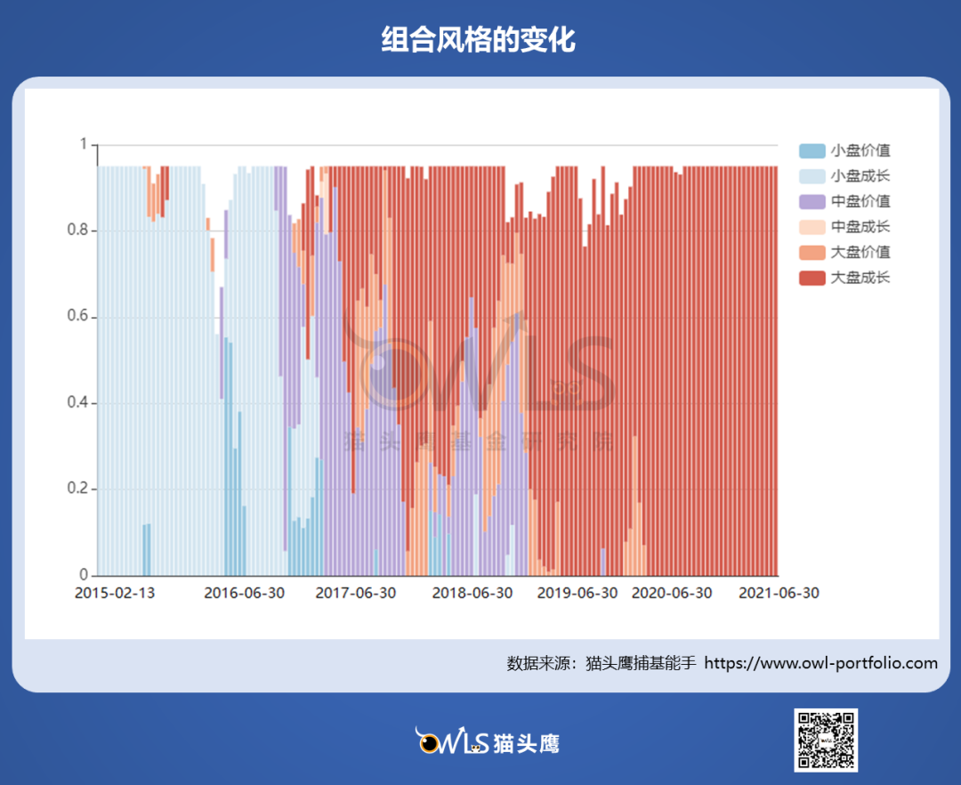 拥有数学博士的背景,2008年毕业后进入金融行业;从研究周期出发,又逐渐将能力圈拓展到消费、医药、科技、制造;2015年管理基金之初,做过大开大合的产业趋势投资,最终又皈依为价值投资的信徒。他的组合风格,也从最初的小盘成长风格,稳定为大盘成长风格。