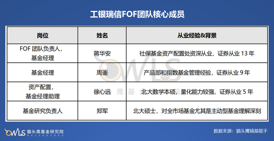 工银瑞信FOF团队共有7人。蒋华安设计了独特的分工和轮换制度。