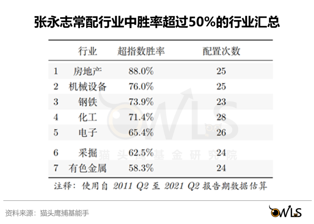 从数据也能看到,地产、机械、钢铁、化工、电子、采掘、有色等行业上,都表现出了稳定的超指数胜率。