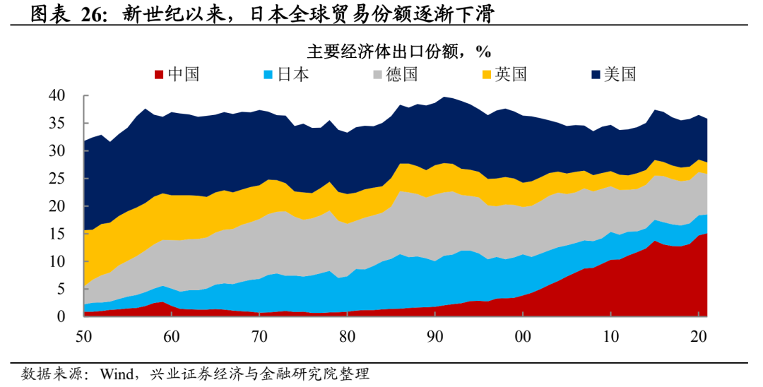 贸易层面:逆全球化背景下,日元贸易优势面临持续走弱压力。自2008年全球金融危机以来,全球需求多年持续弱势,加之中国经济贸易发展、全球价值链枢纽作用增强,日本贸易优势已经处于下降趋势(贸易顺差优势逐渐消退、全球贸易份额逐渐下滑、全球贸易网络节点重要性下降),在此背景下2013年以来日元呈现长期下行趋势。近年来,从中美贸易战到俄乌冲突,逆全球化不断演绎,加之新冠疫情冲击叠加,裂隙加大的世界格局对全球供给、需求将产生持久而巨大的冲击,对于原材料需求依赖于外部供给、制造业产品依赖于全球市场的日本而言,全球需求下行将压缩日本出口空间,而供给冲击下的大宗商品价格压力,将抬升日本生产成本,这无疑会对日本贸易形成两头施压,加大日本贸易优势下行压力,这将给日元带来中长期挑战。