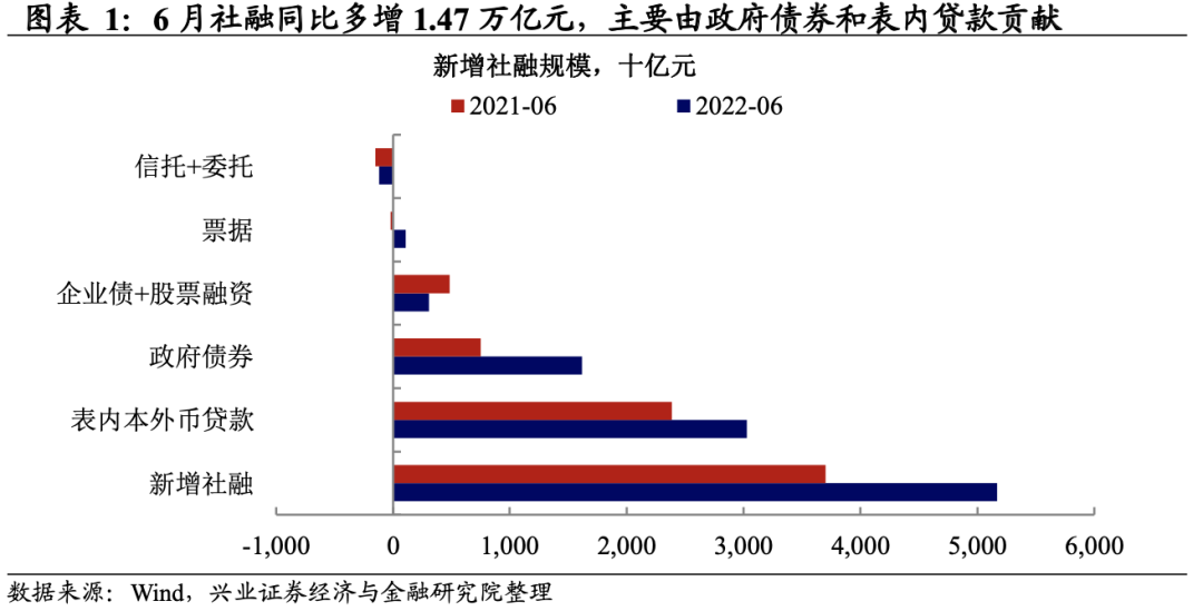 事件:2022年6月新增社融规模5.17万亿元,强于预期的4.65万亿元;社融同比增长10.8%,高于前值的10.5%;新增人民币贷款2.81万亿元,高于预期值的2.44万亿元;M2同比上涨11.4%,高于前值的11.1%,我们认为:
