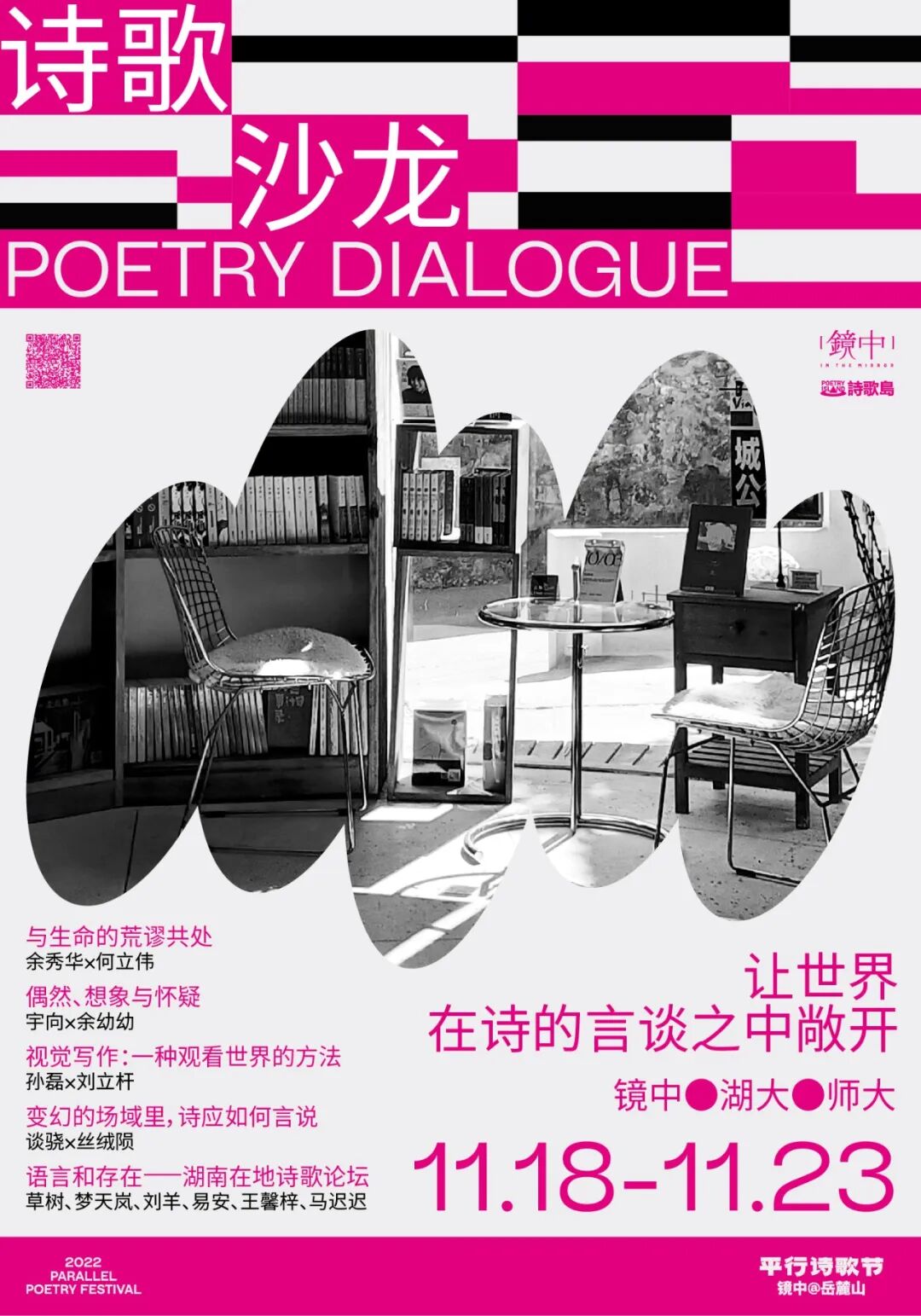 「平行诗歌节」是岳麓山诗歌行动的起点,也是城市人文品牌「镜中」与文艺聚合平台「诗歌岛」携手,为不确定的人世间构筑搭建的「诗的同温层」。