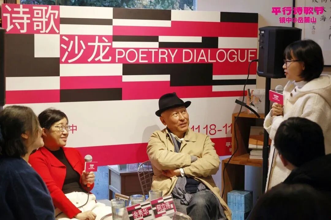 11月18日,第一场诗歌沙龙,是余秀华与何立伟关于“与生命的荒谬共处”的对谈。何立伟分享他最近读到的余秀华的散文,写到“我摇摇晃晃地活着,我半明半暗地活着”,前一句是坚强,后一句是纠缠,正好体现了这场诗歌沙龙的主题“与生命的荒谬共处”。