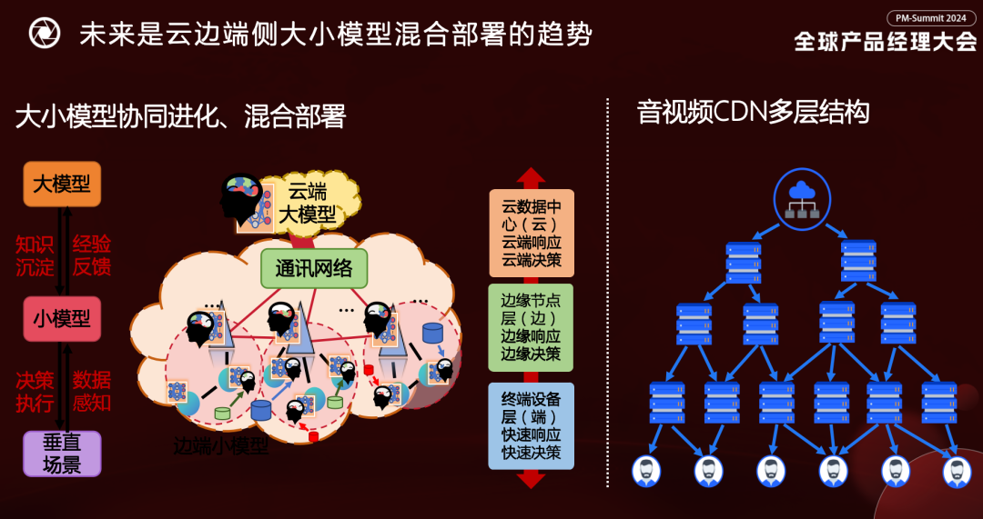 姚欣坦言,今天我们看待的模型,它在规模、可调性、可缝合性之间也存在矛盾,因此未来并不会出现某类大模型一统天下的局面,而是大中小模型分别使用,根据不同的性能问题和成本来决定。他认为,今天的模型有点像当年 CDN 结构,它会在中心层、边缘层到终端承载不同应用,实现综合性价比的最优。