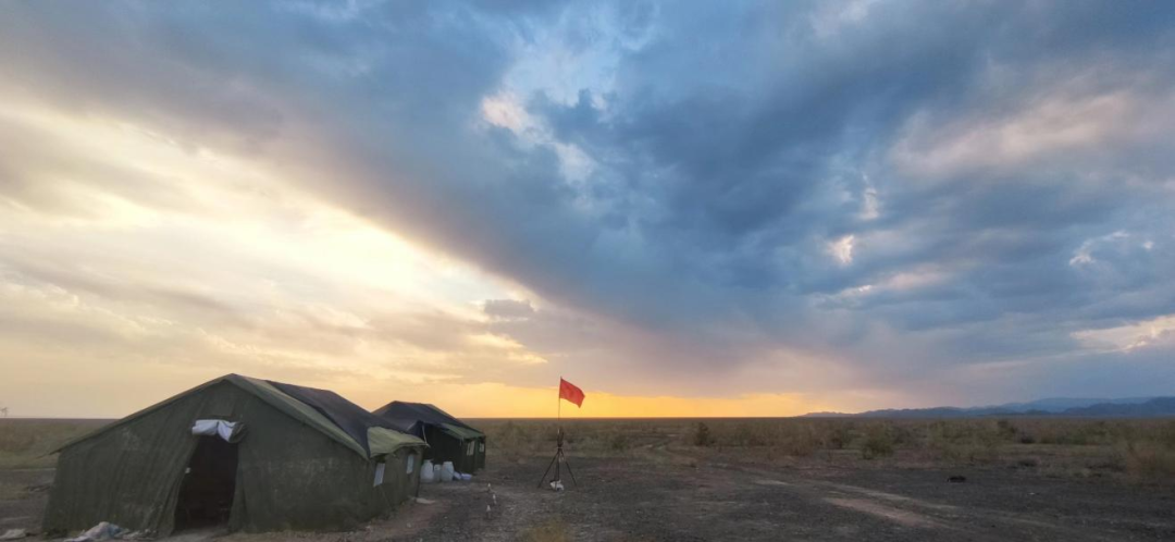 在无人区作业的45天里,我真正领略了来自阿拉山口的风,也知道了为什么稀疏的梭梭树都是弯腰驼背且梳着中分发型。这里的风与我在珠峰时经历的暴风雪相比也毫不逊色,只不过后者夹杂的是雪,而前者则是飞沙走石。7月2日,早起气温零上5度,中午固定在水准仪上的水银温度计直接爆表,至少超过60度,直到夜里12点温度渐渐降下来。队员们刚在帐篷里的行军床上躺下,突然狂风夹杂着黄豆大的雨点急促袭来,营地里的水桶率先被刮倒,队员们第一时间冲过去扶起了水桶,全力保护生活物资,因为大家都知道无人区里水的珍贵,物资的奇缺。短短15分钟,暴风就把大家住宿的帐篷的钢管吹成了麻花状,侧围也被大风撕裂卷到空中。抗争了3个多小时后,风渐渐小了,然而队员们再无余力收拾帐篷,简单整理了被暴风吹得七零八落的营地后,拖着疲惫的身体在车里坐了一夜。