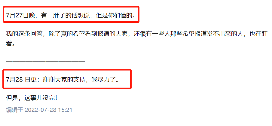 7月28日更:“谢谢大家的支持,我尽力了”。
