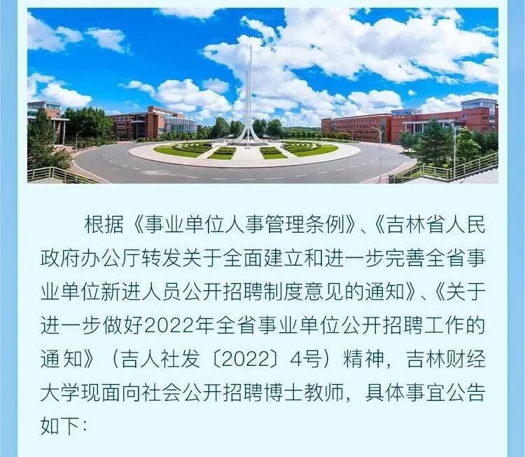 67个席位!询伯闻天下,引四海贤达!吉林财经大学招聘博士教师