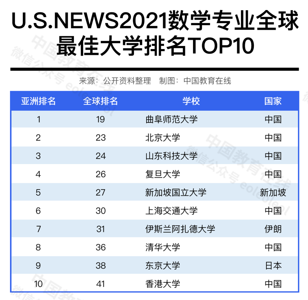 在2021年U.S. News的排名中更是出现了荒唐的一幕。曲阜师大数学系高居中国国内第一,超过北大清华复旦等著名大学,一时舆论哗然。而原因就出在U.S. News在学科排名上,引用率权重非常高,但并不涉及论文质量。