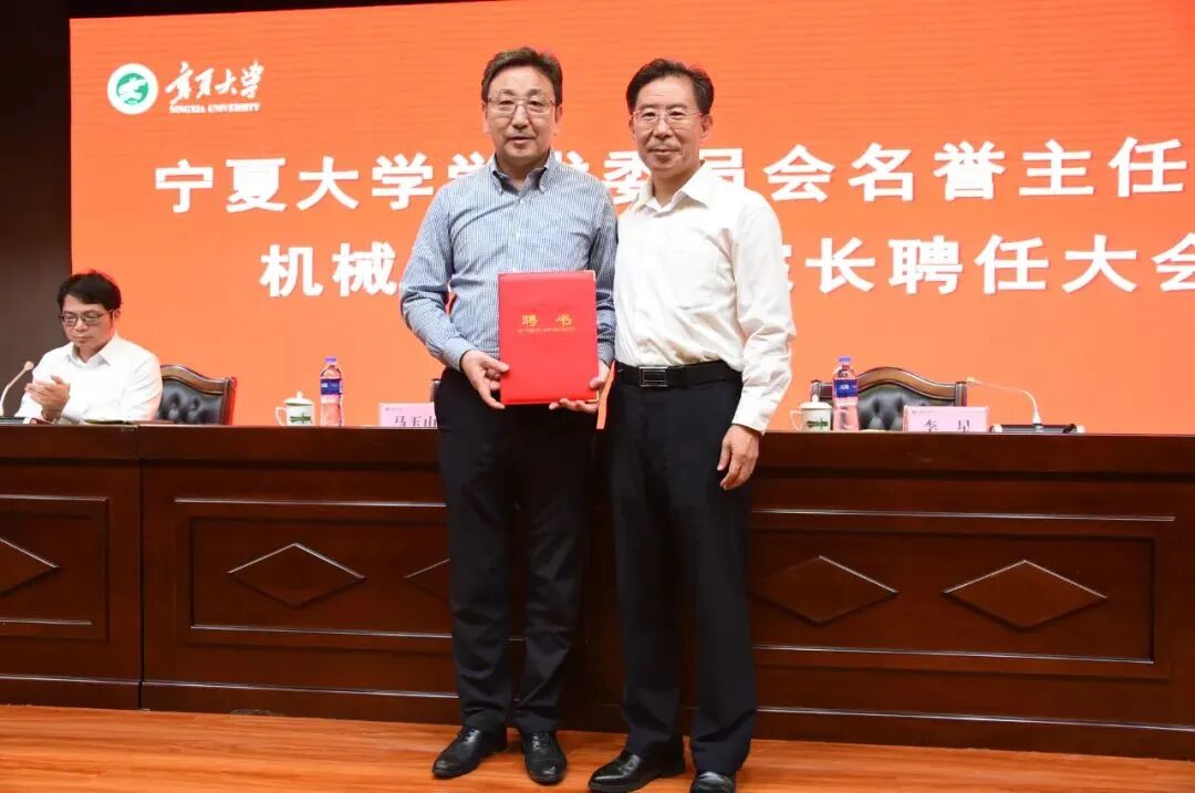 9月14日,宁夏大学召开学术委员会名誉主任委员、机械工程学院院长聘任大会,聘任中国工程院院士,宁夏吴忠仪表有限责任公司党委书记、董事长马玉山为宁夏大学学术委员会名誉主任委员、宁夏大学机械工程学院院长,实现了建校以来聘任院士零的突破,翻开了学校建设发展新的篇章。