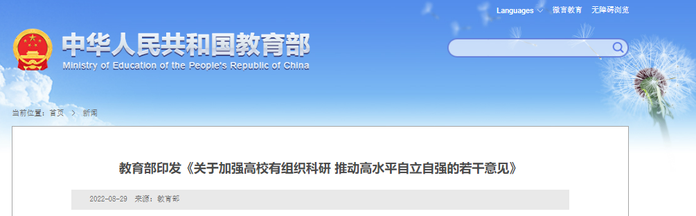 2022年8月29日,教育部印发《关于加强高校有组织科研 推动高水平自立自强的若干意见》,其中指出:深入推进“双一流”建设,加快高校国家重点实验室重组、国家技术创新中心新建布局和国家工程中心高质量建设,支持高校牵头或参与国家实验室和区域实验室建设。
