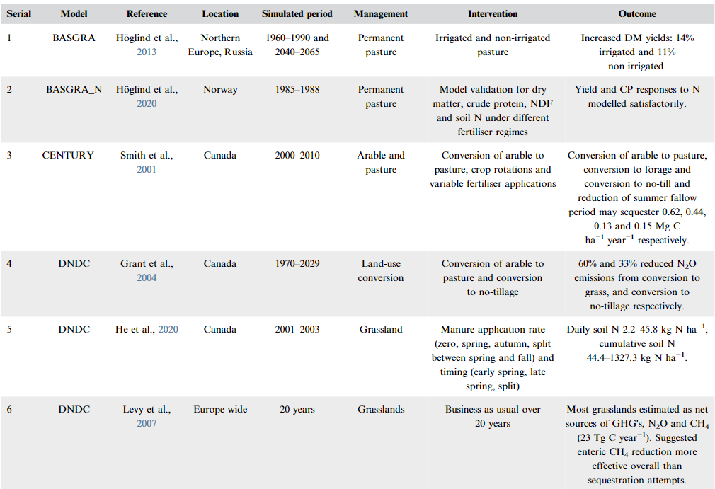 芬兰自然资源研究所Daniel Forster、Samuli Helama、Perttu Virkajärvi、Narasinha Shurpali联合课题组与澳大利亚塔斯马尼亚大学Mattew T. Harrison、美国农业部农业研究院Clarence Alan Rotz、浙江大学常锦峰、法国巴黎-萨克雷大学Phillippe Ciais、加拿大农业与农业食品部Elizabeth Pattey回顾了临近北极地区环境与不同管理系统影响下农业生态模型的性能。研究发现这一地区缺乏相关建模研究,自2000年以来,每年发文量均不超过三篇。结果显示IFSM和BASGRA_N模型在草地生产方面表现最佳,DNDC模型在预测土壤N2O和NH3排放方面表现最佳。整体上来讲,没有一种模型的性能超出其他模型,这意味着在这一特殊环境背景下的研究更需要整体建模。因此,现有农业生态模型仍需进一步评估,以此推动更好地开展临近北极环境下农业生态系统相关研究。