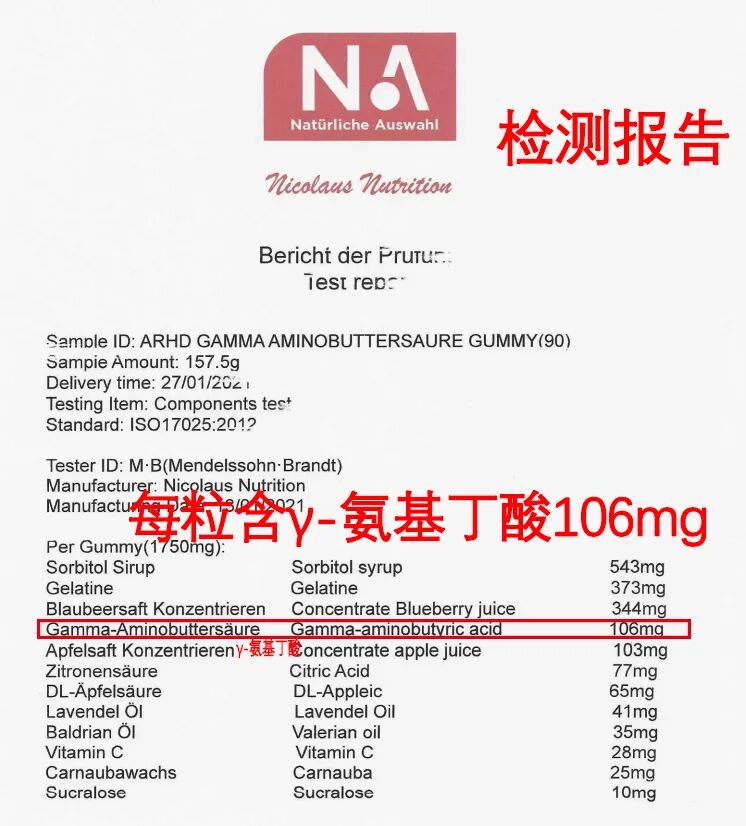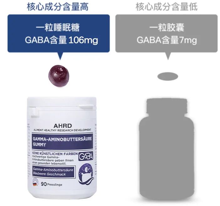 经检测,AHRD阿赫德睡眠软糖的GABA含量是远远高于同类产品的。实力检测每粒软糖GABA足足106mg,在效果方面毋庸置疑!