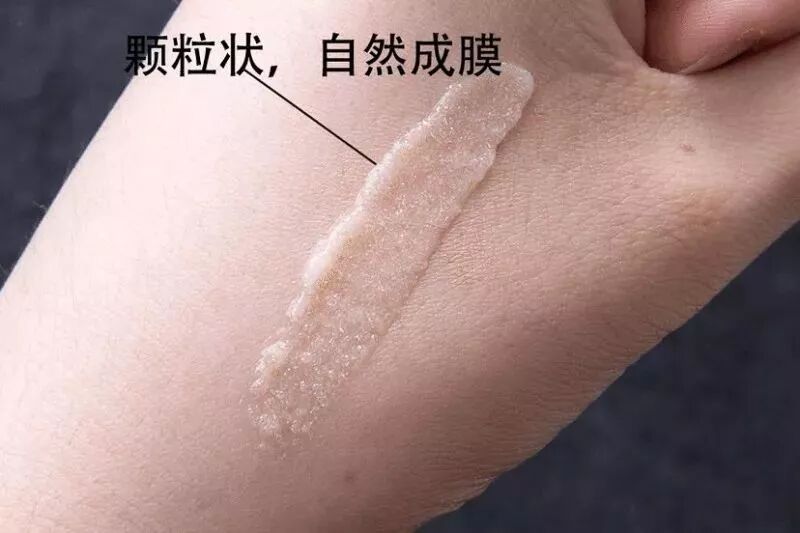 为了不引起大家不适,小编把凝胶质地的膏体涂在手上给大家看看,轻轻推开,膏体呈现颗粒状,自然形成了一层保护膜。