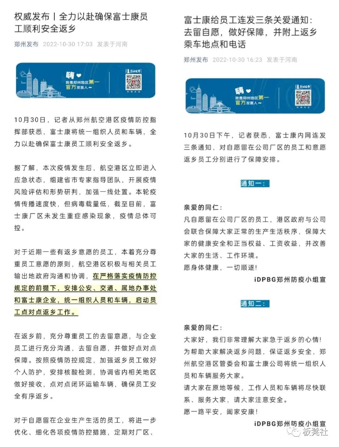 富士康厂区未发生重症感染现象,疫情总体可控。称将尊重员工个人意愿办理离职手续。