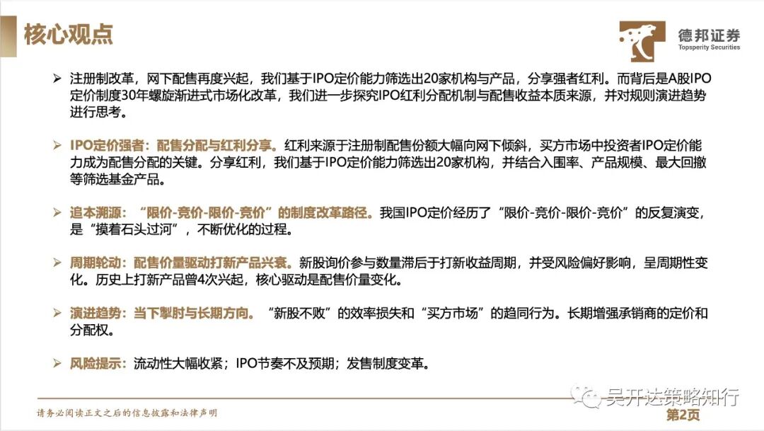 清晰版PPT欢迎联系对口销售,或联系:吴开达(微信号:po1wkd)、姚皓天(电话/微信:16601868896)证券研究报告:《德邦证券-策略专题-IPO定价强者红利背后的制度、本源与演进20210412》