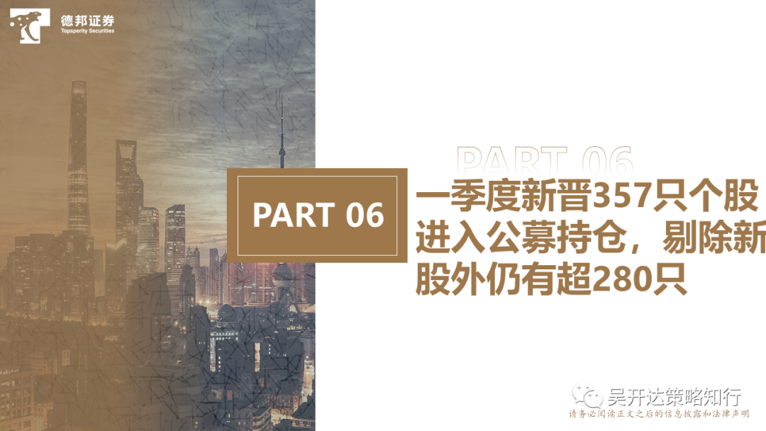 清晰版PPT欢迎联系对口销售,或联系:吴开达(微信号:po1wkd)、张冬冬(电话/微信:13817265616)风险提示:基金口径新成立披露不完整;客观数据不代表投资观点;季报仅披露十大重仓股反应持股不全面。