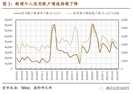 个人杠杆资金边际增量继续减少,新增个人信用账户增速回落。5月个人信用账户净增加33,324户,环比下降13.80%。本期新增与新销账户数较上期均有所下降,个人融资客入市并不积极。