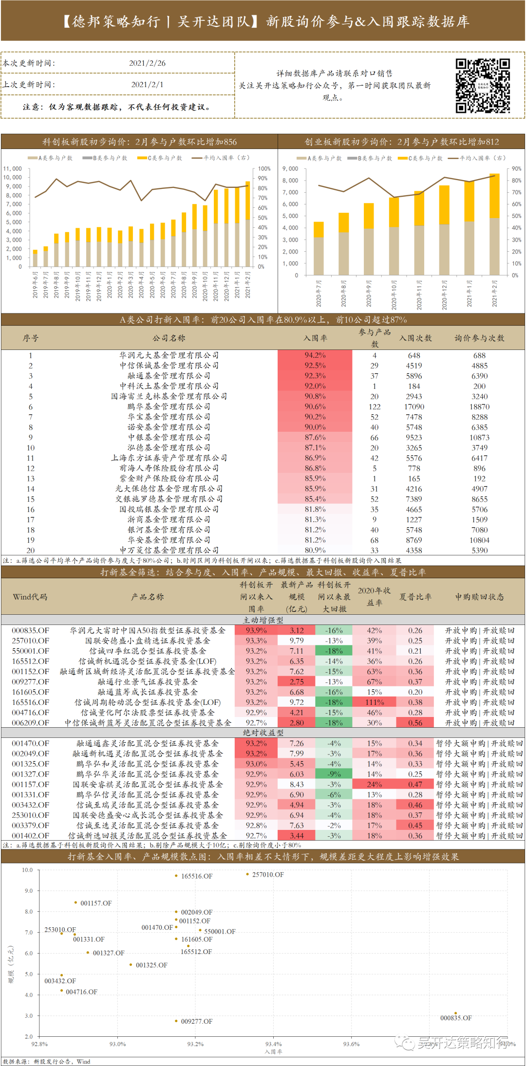 《【德邦策略知行】新股询价参与&入围跟踪数据库》可联系对口销售获取。吴开达策略知行团队正在组团,欢迎加盟。后续我们策略知行五大领域研究产品将陆续上线,关注公号后可第一时间收取。