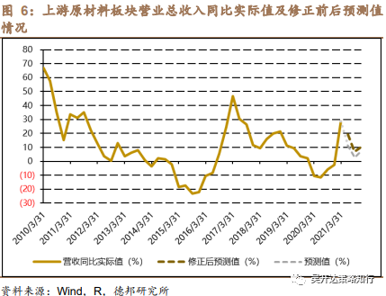 模型解释指标的修正是两维度上的。一则,13个解释指标21Q1、4月实际值已公布,与此前预测值存在偏差,需进一步调整;二则,随着对国内经济形势以及政策把握的不断加深,解释指标预测值也有调整。
