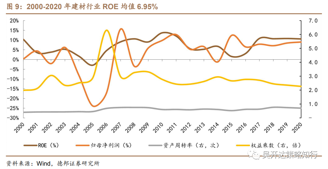 上游去杠杆成效显著,盈利能力整体维持稳定。上游板块中,2018-2020年钢铁、建材行业维持10%以上ROE水平。上游板块在金融危机后资产负债率上升较快,2016年以来,除建材、有色外,上游板块产能过剩行业去杠杆成效显著,利润率水平整体保持稳定。