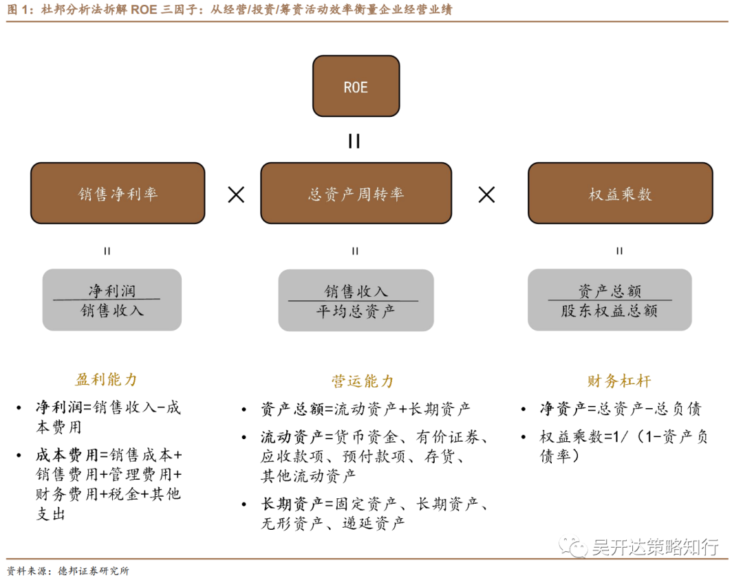 杜邦分析将ROE拆解为盈利能力、营运能力、资本结构三个维度,从经营、投资、筹资活动效率三方面去衡量企业的经营业绩,并为判断企业的经营是否实现股东投资回报的最大化提供有效依据。当三方面的各项比率有所提升,则带来ROE提高,代表企业为股东创造更高价值。