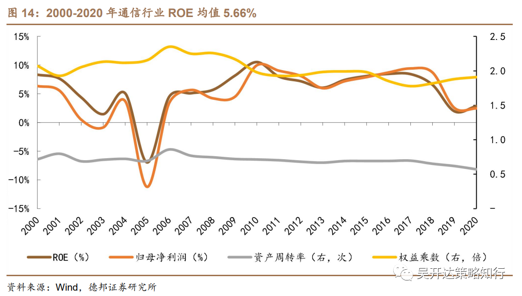 历史全A市场ROE均值9.26%,利润率波动为核心影响因素。2000-2020年,全A市场的ROE整体法均值水平9.26%(算数平均6.42%),拆解杜邦三因子,历史上全A市场的净利率水平波动幅度较大,此外财务杠杆(权益乘数)的波动对利润率变动具有一定前瞻指导性,但影响企业利润率的因素较多且复杂,两者的相关性并不显著。资产周转率持续保持稳定,上市企业2000-2020年的历史周转效率均值0.68。2018-2020年全A市场整体的杠杆率小幅下降,企业净利率提高是ROE水平保持稳中向上的核心驱动力。