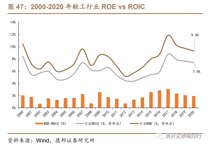 综合来看,处于第一、第二象限的行业及企业更具投资价值,结合ROIC指标,可以弥补ROE指标受杠杆率、非经常性损益等因素影响的不足,可以更好地反映出企业真实的价值创造能力。