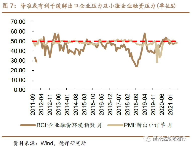 降准后市场一致预期暂无法证伪。我们认为,全面降准意义类似于美国2019年中的“Mid-cycle Adjustment”,有望强化当前成长强于价值的结构市特征。2019年中,基于“防范全球增长疲弱和贸易政策不确定性带来的下行风险,帮助抵消这些因素对经济的影响,并推动通胀更快重返我们的2%目标”,美联储货币政策进行了“周期中调整”,分别于2019年8月、9月、10月降息25个基点,并引发了全球央行跟随。事后看,如果没有疫情黑天鹅,美联储大概率其后不会再进行降息。我们认为,在2018年中美脱钩开始后,我国货币政策开始独立于美联储,甚至由于中国央行逆周期的前瞻性,我国货币政策取向更倾向于成为美国的风向标。本次周期中调整,在经济短周期下行压力凸显的背景下,更像是为了应对美联储日后潜在的收紧做应对,最直接的作用是使得人民币贬值缓解出口企业压力(PMI新出口订单已连续两月低于50%)。按照人民银行说法则为“此次降准的目的是优化金融机构的资金结构,提升金融服务能力,更好支持实体经济。一是在保持流动性合理充裕的同时,增强金融机构资金配置能力,为高质量发展和供给侧结构性改革营造适宜的货币金融环境。二是调整中央银行的融资结构,有效增加金融机构支持实体经济的长期稳定资金来源,引导金融机构积极运用降准资金加大对小微企业的支持力度(BCI企业融资环境指数今年以来持续低于50%)。三是此次降准降低金融机构资金成本每年约130亿元,通过金融机构传导可促进降低社会综合融资成本”。同时,本次降准释放的信号也有利于缓解小微企业融资条件的紧缩。我们认为市场所预期的下半年“稳信用、宽货币”短期难以证伪,需要跟踪MLF到期日央行的操作。在“稳信用、宽货币”证伪前,结构性牛市(成长占优)趋势暂难终结。即:若降准能起到推升信用作用,则市场趋势性机会将到来;若降准仅起到宽货币作用,则当前市场趋势将被强化。