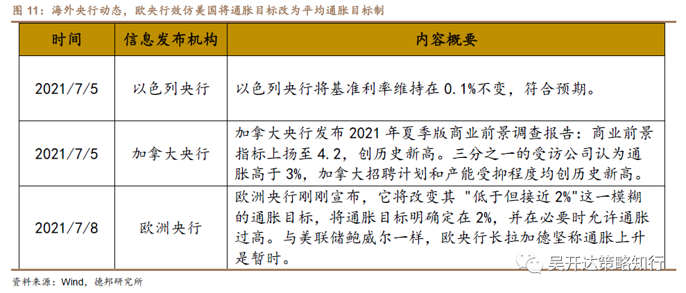 欧央行改变通胀目标,但对国内影响较小。本周中(7月9日),欧央行修改通胀目标,此前通胀目标为“接近但低于2%”,修改后与美国相同为“对称的2%水平”即可以短暂容忍通胀水平超过这一目标。我们认为这意味着欧央行摒弃了德国央行较为保守的控制通胀目标制(德国央行强调“通胀风险高于一切”),考虑到HICP(调和通胀率)当前仅为2%,同时 2021年、2022年、2023年,欧元区通货膨胀率将为1.9%、1.5%和1.4%,核心通胀率将为1.1%、1.3%和1.4%,欧央行调整通胀目标的举措将为其后PEPP,乃至定向长期再融资操作(TITRO)提供契机,欧洲加大财政刺激力度的可能性正在逐渐加大。