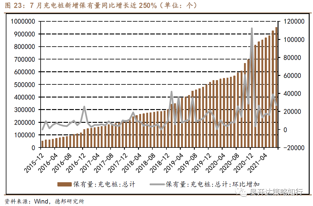 受益于新能源汽车销量增长,充电桩亦迎来快速发展期。7月充电桩保有量新增2.7万个,环比出现30.5%回落,但同比仍有近250%涨幅。若按照车桩比1:1的建设目标,中国充电桩建设仍存在较大缺口,后续在政策的催化下,充电桩有望加速发展。
