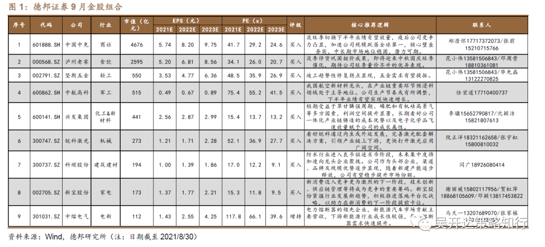德邦证券9月金股