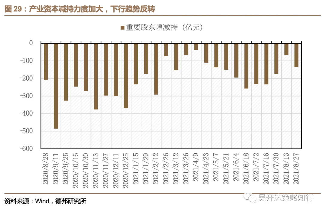 产业资本结束自六月中旬以来减持减少趋势,本期减持力度加大。从总体上看,本期重要股东减持135.66亿元,较上期增加68.51亿元,近两个半月以来首次出现反转。