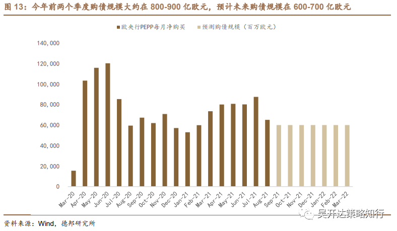 欧央行边际转鹰,放缓四季度PEPP购债速度。本周四欧央行召开9月议息会议,本次会议声明与市场预期基本一致。欧洲央行表示将放缓第四季度的紧急抗疫购债计划(PEPP)购债速度,但PEPP规模仍在1.85万亿欧元,且至少持续到2022年3月底。欧央行同时强调,将根据市场情况灵活使用紧急抗疫购债计划(PEPP),灵活购买债券,以防止融资环境收紧。