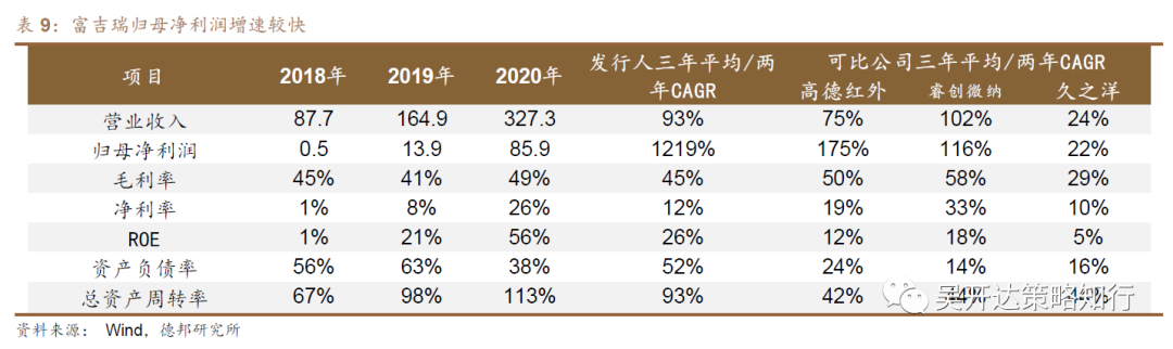 公司2020年营业收入为3.27亿元,2018年至2020年两年CAGR为93.21%,毛利率为49.20%;2020年归母净利润为0.86亿元,两年CAGR为1218.86%。