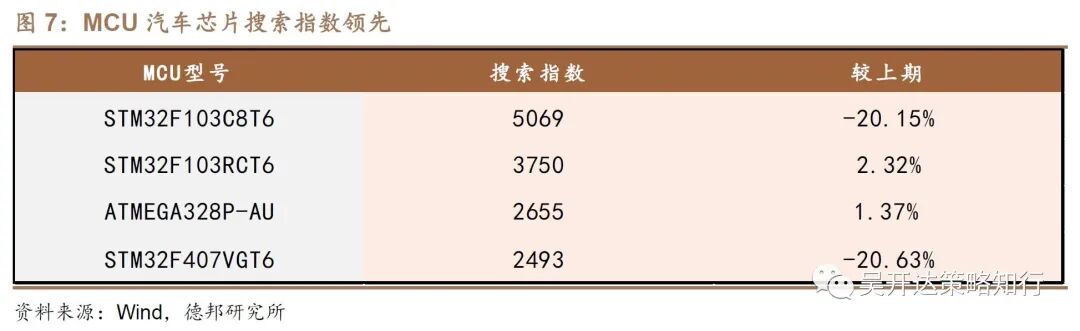 近期马来西亚疫情出现缓解,“缺芯”出现边际改善。但在新能源汽车渗透率的持续提升背景下,下游需求依然紧俏,MCU、MOSFET、IGBT等汽车芯片未来有望延续“缺货涨价”格局。从华强电子网的搜索指数来看,尽管MCU等汽车芯片环比热度出现降温,但意法半导体MCU芯片仍在前五中占据三席,下游订单依然处于高位,将支撑MCU、MOSFET、IGBT等汽车芯片价格继续向上。