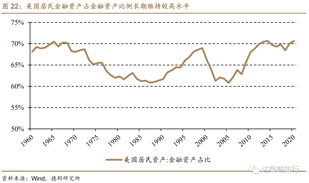我国居民风险资产处于较低配置水平,经济转型下将逐步提升。根据《2019年中国城镇居民家庭资产负债情况调查》数据,中国居民将20.40%的资产配置于金融资产,其中股票和基金在其中占比仅10%;而美国端2022年其居民将超过70%的资产配置于金融资产,股票和基金在其中占比达近50%。随着经济增长转型,投资机会将转向资本市场,我国居民股票&基金将逐步提升,增量空间较大。