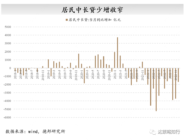 12月社融脉冲为26.13%,前值27.16%,由于政府债、企业债、居民贷款转弱,7月触顶以后转弱下行。居民中长贷12月同比少增1693亿,连续13个月出现同比负增长。
