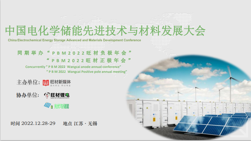 正是基于这样的国内外能源背景下,我们旺材新媒体于2022年12月28日-29日在江苏省无锡市正式举办了此届【中国电化学储能技术与材料发展大会】。