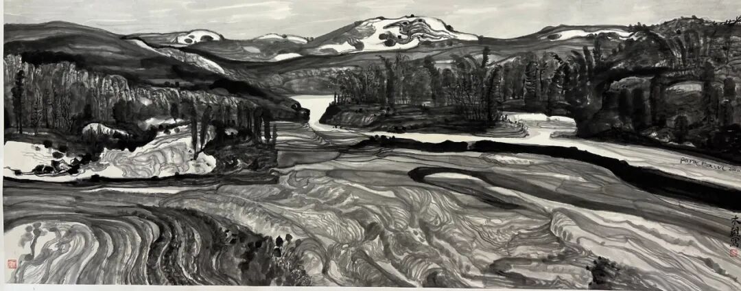 吴木离先生的当代水墨,捕捉了大自然声、光、色的自然本体语言,从平面空间向立体时空进行了转换。其以准确简约的概括能力,并富于动感的主观形式,将瞬息万变的客观物象融汇干墨色氤氲之间,墨色变化中逆光而立的肌理,虚实相生间迹过留痕的幻影,再现出中国道家老庄哲学的神秘与玄妙之美。其一方面注重水墨媒材的实验性表现,另一方面机巧地构建了全新的图式语言,这并非是一个单纯的形式问题,而是一种厚积薄发的生命感悟与艺术观念,完全迎合了新时代的审美取向与文化价值,我想这正是吴先生作品最大的艺术研究价值所在。