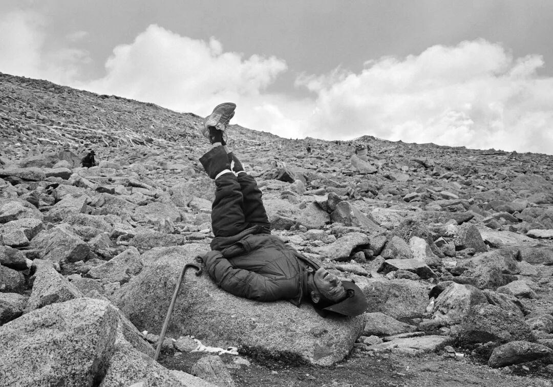 海拔5630米的卓玛拉山口,一个倒立给头部充血的男人