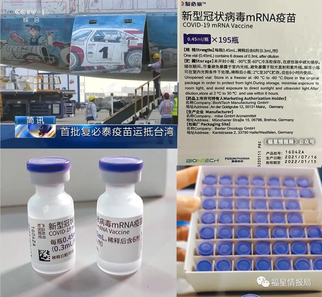 台湾方面,今早7时第12批复必泰疫苗今天上午7时抵达台湾,到货总量接近千万剂。