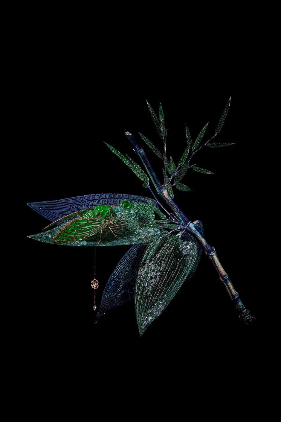 The "Stilled Life" cicada brooch and sculpture, made of imperial jadeite, rubies and colored diamonds, is the main attraction. It will be displayed for the first time on the Chinese mainland and will be the exhibit with the highest declared value in the expo's history.